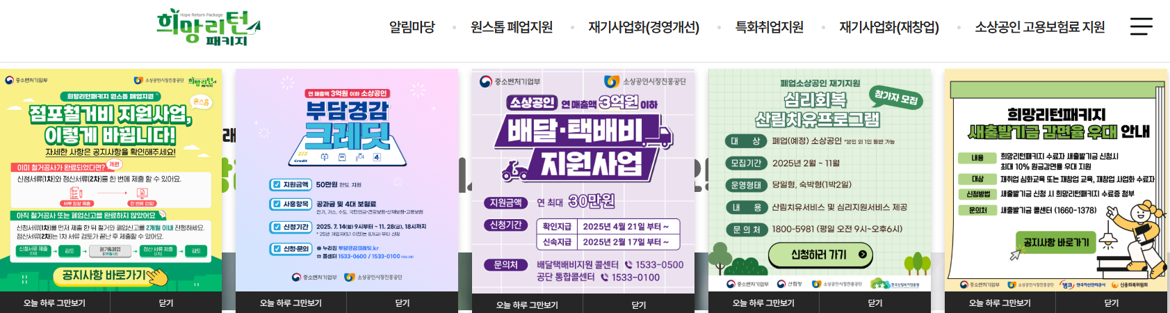 ✅ 희망리턴패키지(https://www.sbiz.or.kr/nhrp/main.do)