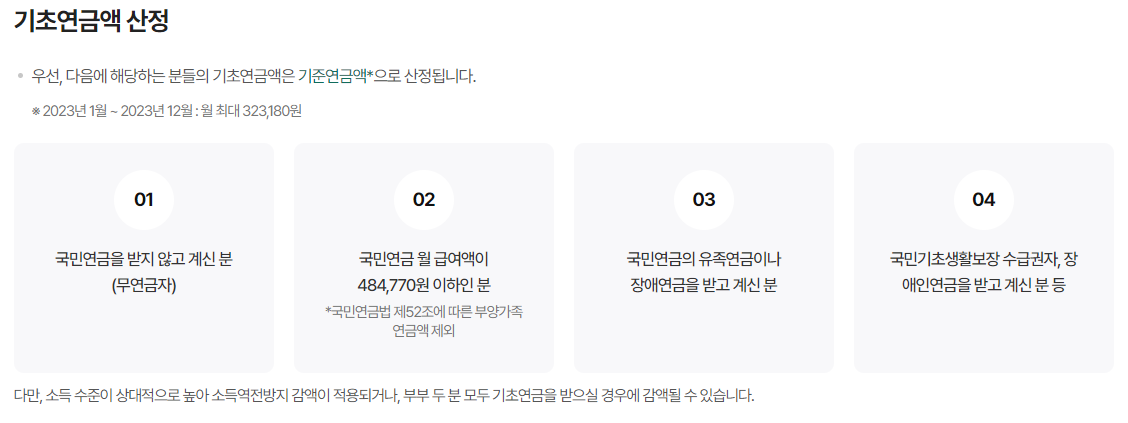 기초연금은 만 65세 이상이고 대한민국 국적을 가지고 계시며 국내에 거주('주민등록법 제6조 1,2호에 따른 주민등록자)하는 어르신 중 가구의 소득인정액이 선정기준액 이하인 분