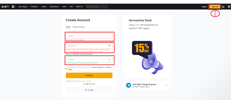 - 바이비트(bybit.com)에 접속해서 우측 상단에 있는 Sign Up을 누른다.