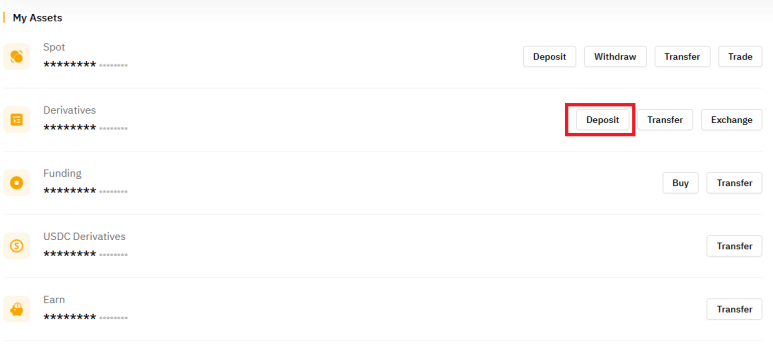 ① 우측 상단의 Assets를 눌러 Derivatives의 Deposit을 누른다.