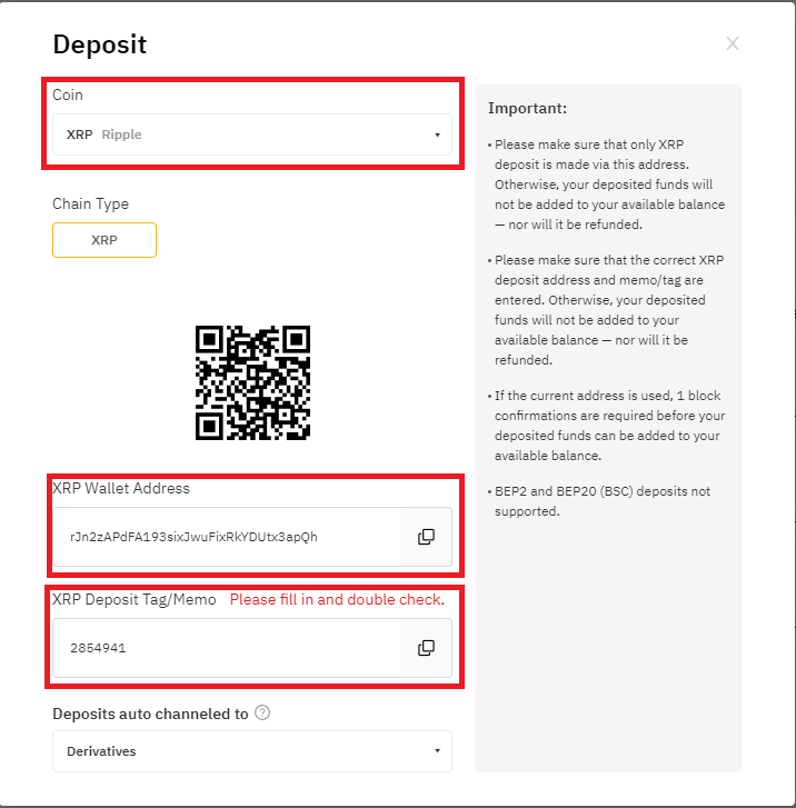 ② 코인을 XRP로 변경하고 Wallet Address와 Tag/Memo를 복사해서 국내 거래소(업비트) 출금신청 후 정보를 입력한다.