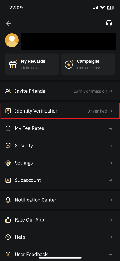 √ Identity Verification 우측 Verify Now 클릭