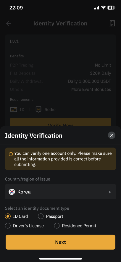 √ Lv. 1 Verify Now, Korea, 신분증(주민등록증, 운전면허증, 여권)