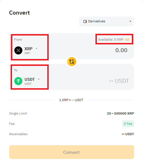 √ PC의 Assets에서 코인 입금이 확인되면Convert를 누른다.