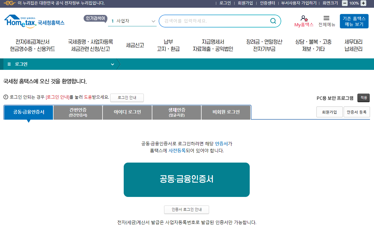 1. 국세청 홈택스(https://www.hometax.go.kr) 로그인