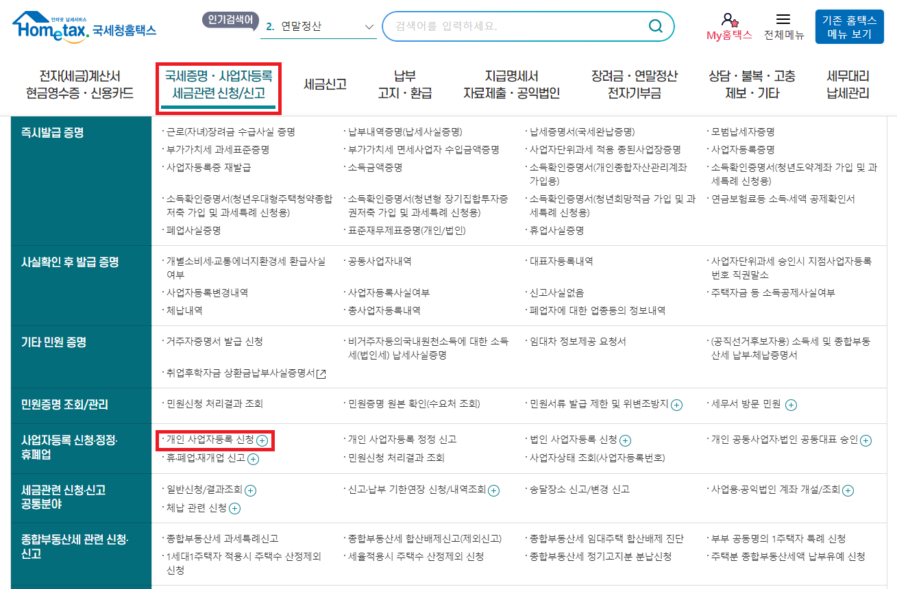 2. 국세증명, 사업자등록 세금 관련 신청/신고 - 개인 사업자등록 신청