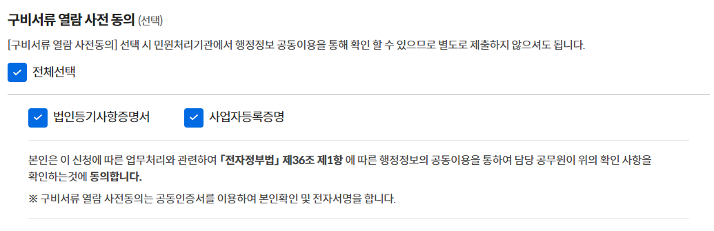 ★ 구비서류 열람 사전 동의를 해야 다음으로 넘어갈 수 있습니다.