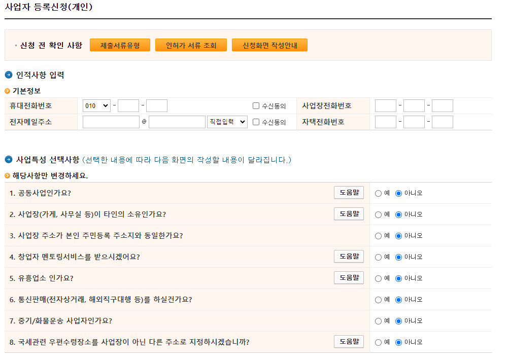 사업자등록 5분만에 따라 하기
