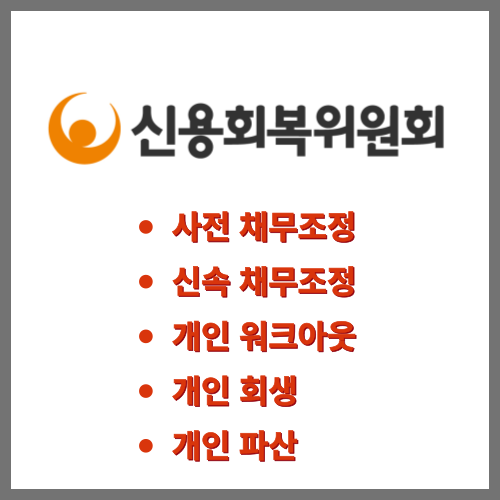| 신용회복위원회 사전채무조정 프리워크아웃 지원 대상 및 지원 내용 총 정리 (0) | 2023.07.24 |