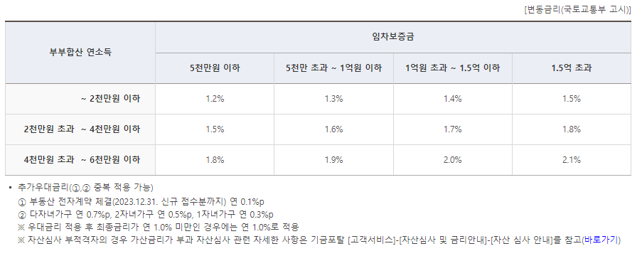 • (소득) 대출신청인과 배우자의 합산 총소득이 6천만 원 이하인 자
