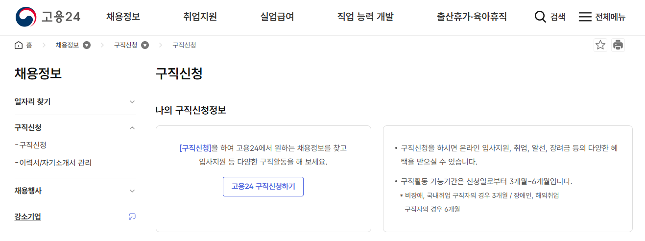 - 워크넷(https://www.work.go.kr) 사이트에서 구직 신청을 해야 합니다.