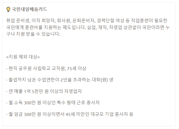 ✔️ 직업 훈련이 필요하다면? → 국민내일배움카드