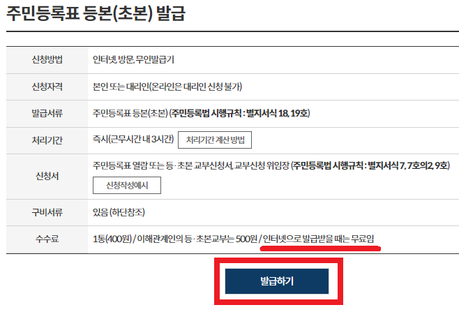 ▶ 주민등록등본 검색 또는 자주 찾는 서비스의 주민등록등본(초본) 클릭