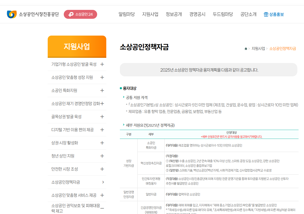 ✅ 소상공인 정책자금 지원(https://www.semas.or.kr/web/SUP01/SUP0103/SUP010301.kmdc)
