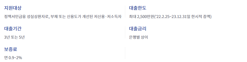 위의 지원 대상에 해당하더라도 서민금융진흥원 보증심사 및 은행 자체 대출심사 결과 최종적으로 보증 및 대출이 거절될 수 있습니다.