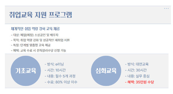 폐업 소상공인의 구직 및 취업 성공을 위한 지원금을 제공(기초교육 수료 후 신청 가능)