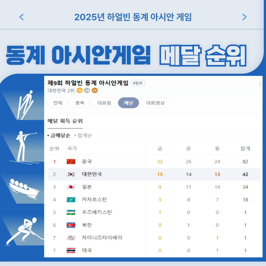 2025.02.08 - [▶ Daily/- 생활정보] - 2025 하얼빈 동계 아시안게임 주요 경기 일정 (2월 9일~2월 14일)