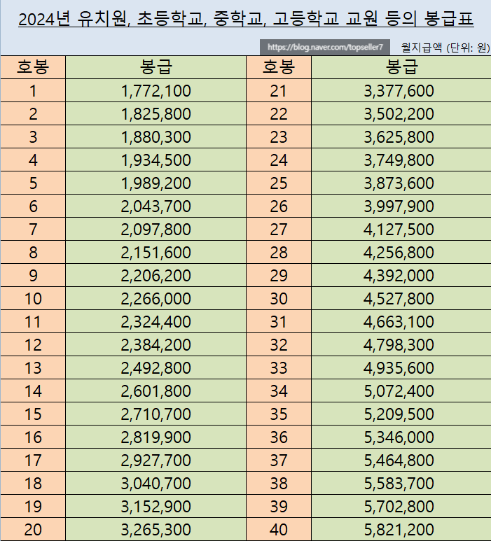 2024년 교사 봉급표