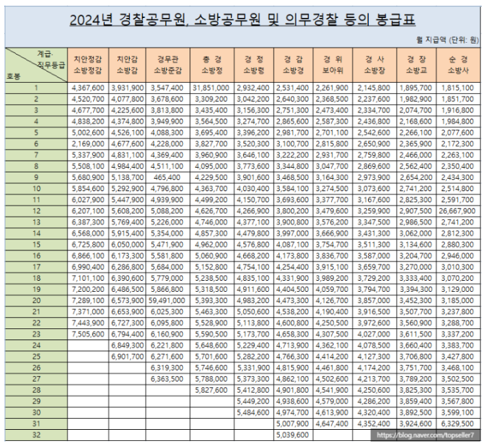 - 2024년 경찰, 소방 봉급표